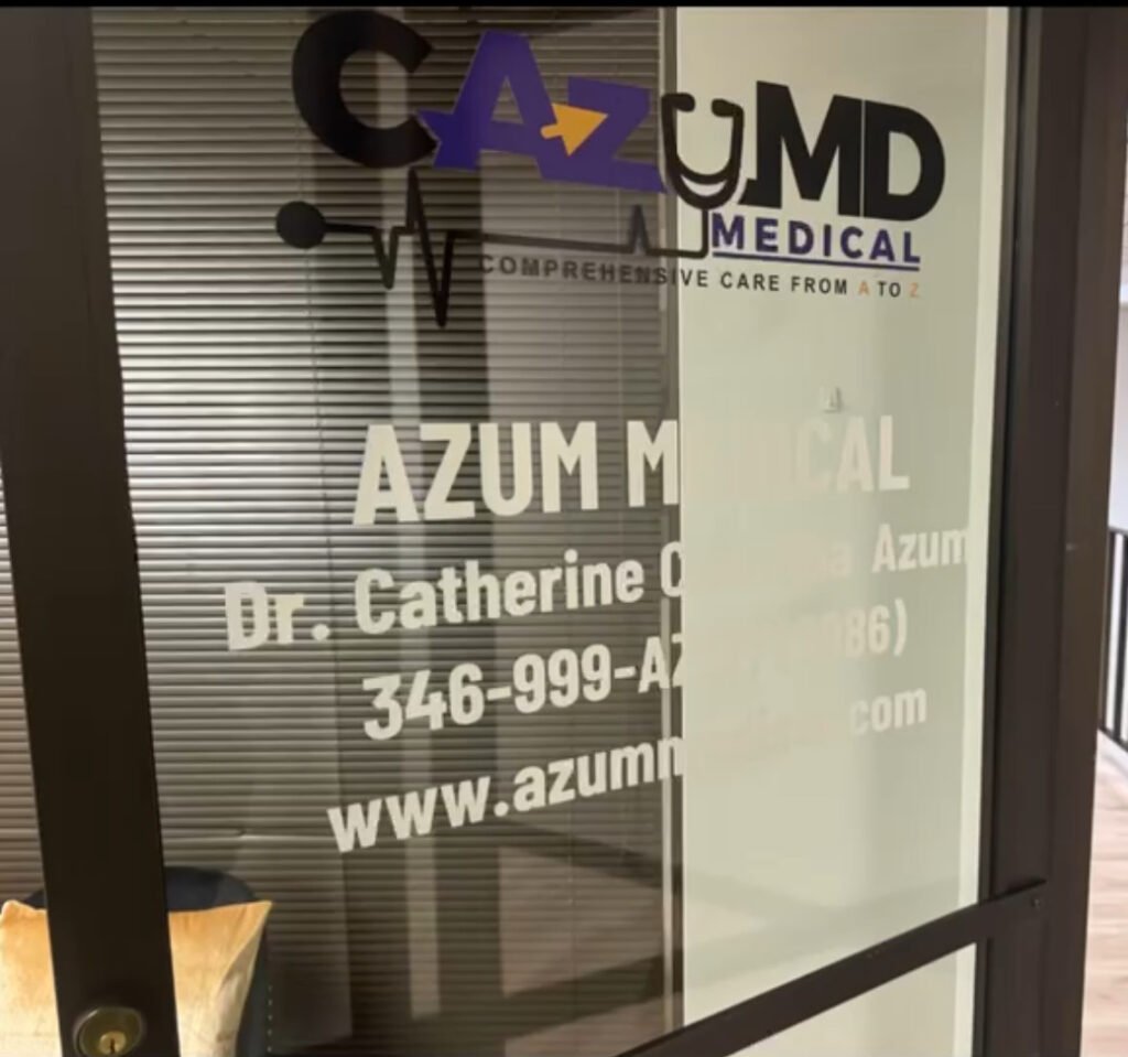 Our Location Visit us for personalized care in a comfortable, welcomingenvironment. You can find us at: Address:17115 Red Oak DriveSuite 213Houston, TX 77090 Hours of Operation (8 am-1pm on Monday, Tuesday, Wednesday, Thursday)OFFICE CLOSED on Friday, Saturday, and Sunday but TeleMedicine Options are available)Email Address (info@azummedical.com)Toll Free Number: 877-333-AZUM (2986)Local Number: 346-999-AZUM (2986)